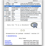 [커맨드 패키지]R은 패키지(packages)라 불리우는 일련의 모듈들로 구성되어 있다. R을 시작할 때, 기본적으로 탑재된 패키지로 로딩되는데 현재 로딩된 패키지 리스트를 확인하려면 다음과 같이 입력한다:> search() [1] ".GlobalEnv" "tools:RGUI" "package:stats" "package:graphics" "package:grDevices" "package:utils" "package:datasets" [8] "package:methods" "Autoloads" "package:base" [표준 패키지]현재 로딩되어 있지는 않지만 사용가능한 패키지(물론 이들중에는 시작 시 자동으로 로딩되는 패키지들도 있다)의 리스트를 확인하려면 다음과 같이 입력한다:> installed..